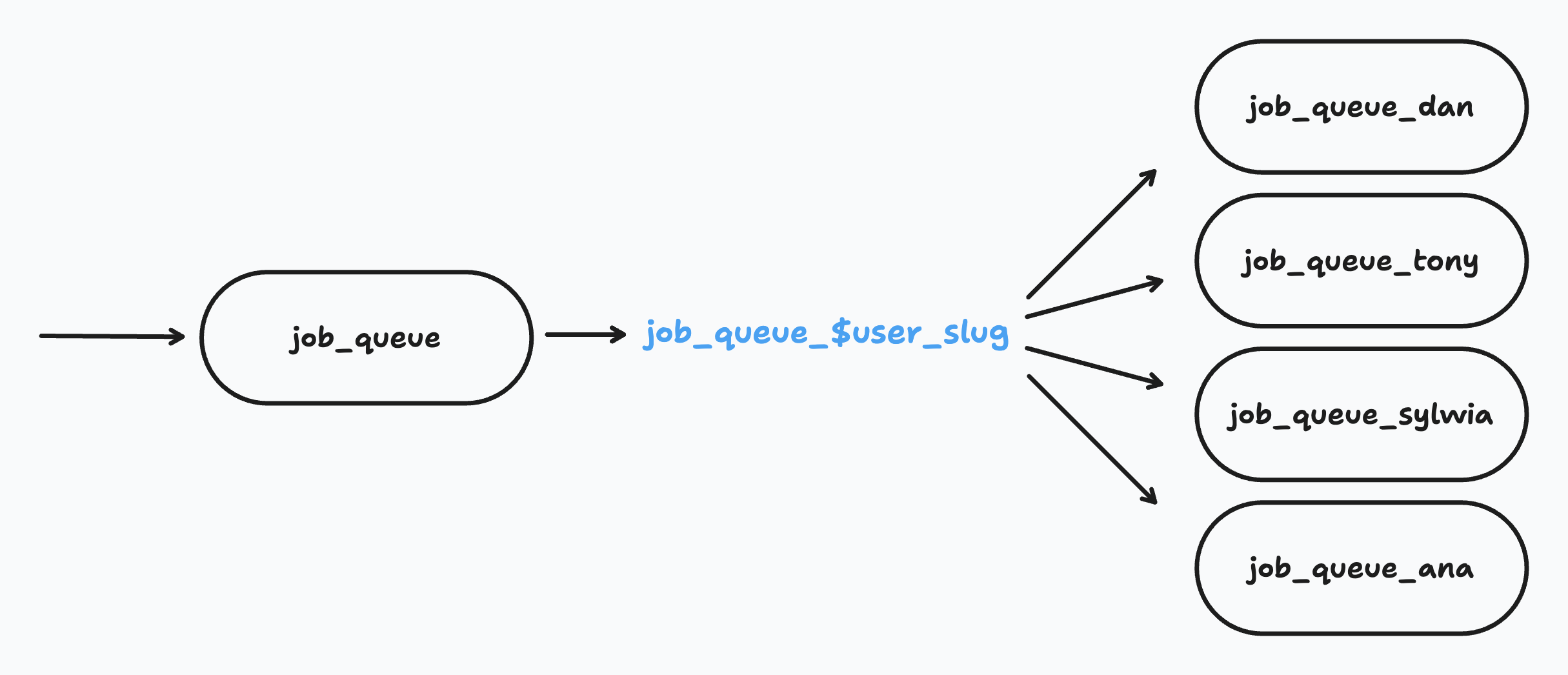 • Worker complexity and performance: Workers need to be designed to scan and pull from multiple queues intelligently to prioritize work effectively. It's not likely that you can afford a worker-per user at scale so workers need to be able to handle multiple queues and re-adjust as more users are added to your system. If not done well, this can lead to poor performance for all users.