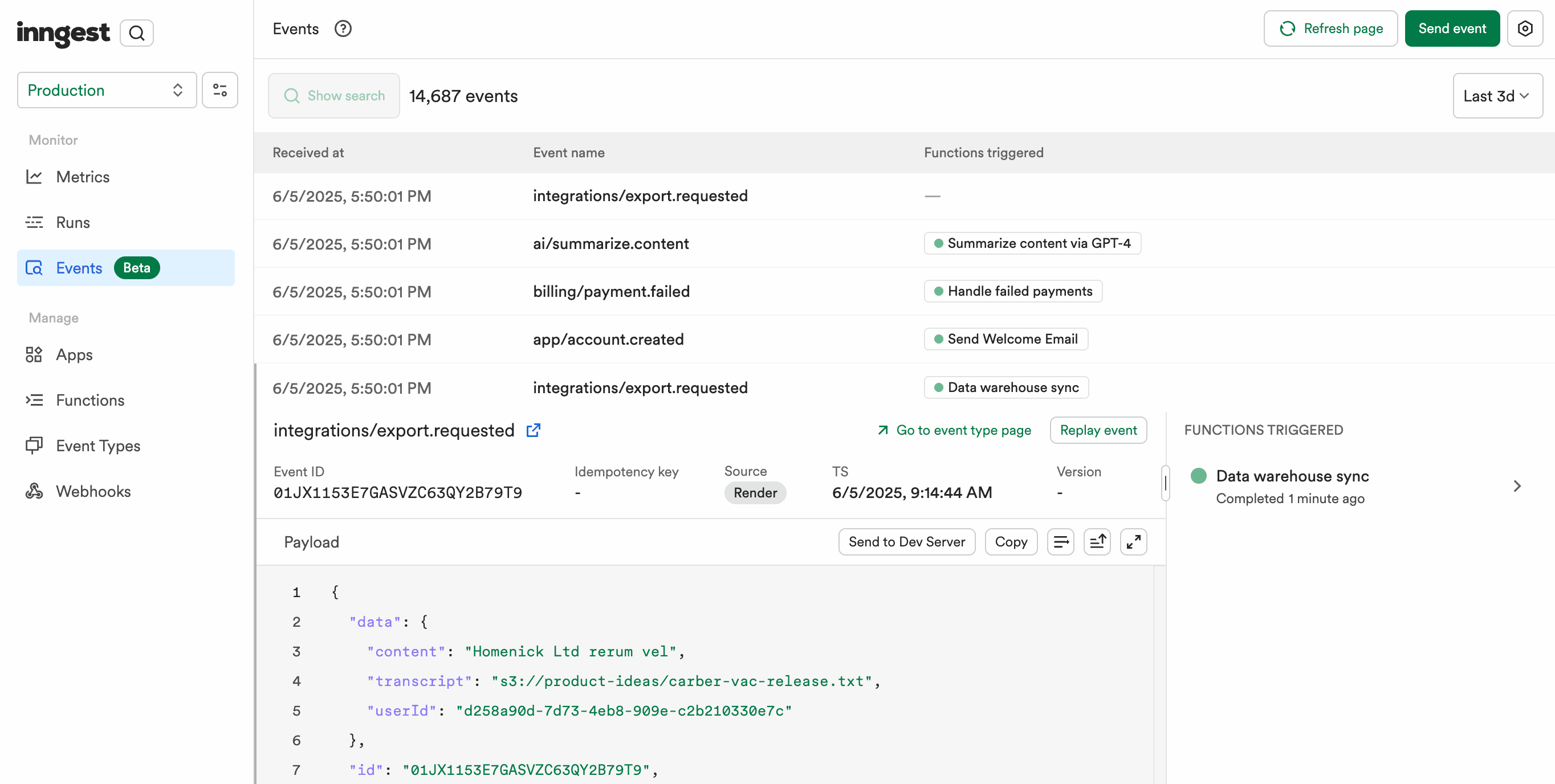 In addition to searching by event and run ID, you can now find results by app, event, and function names, making it easier than ever to locate what you need in each environment.